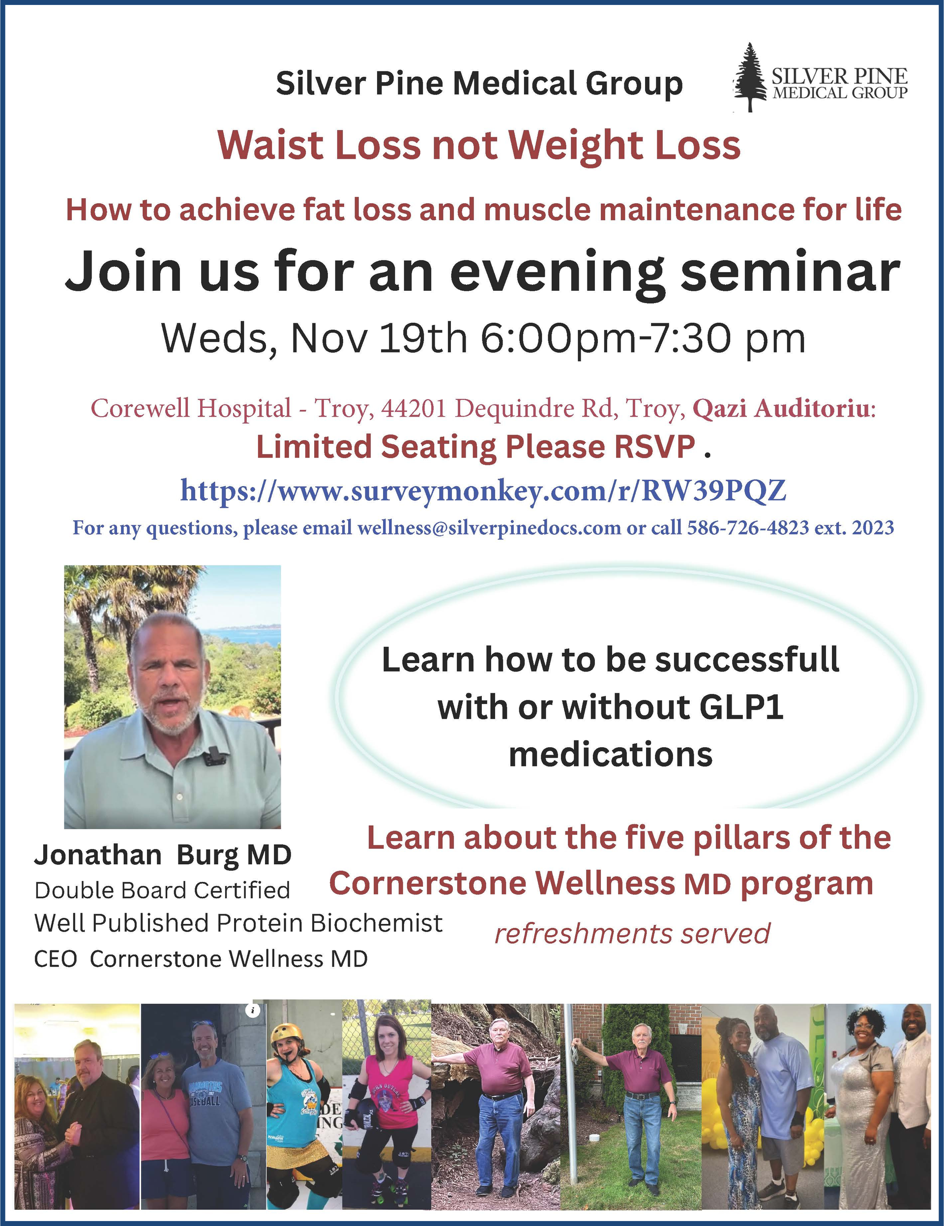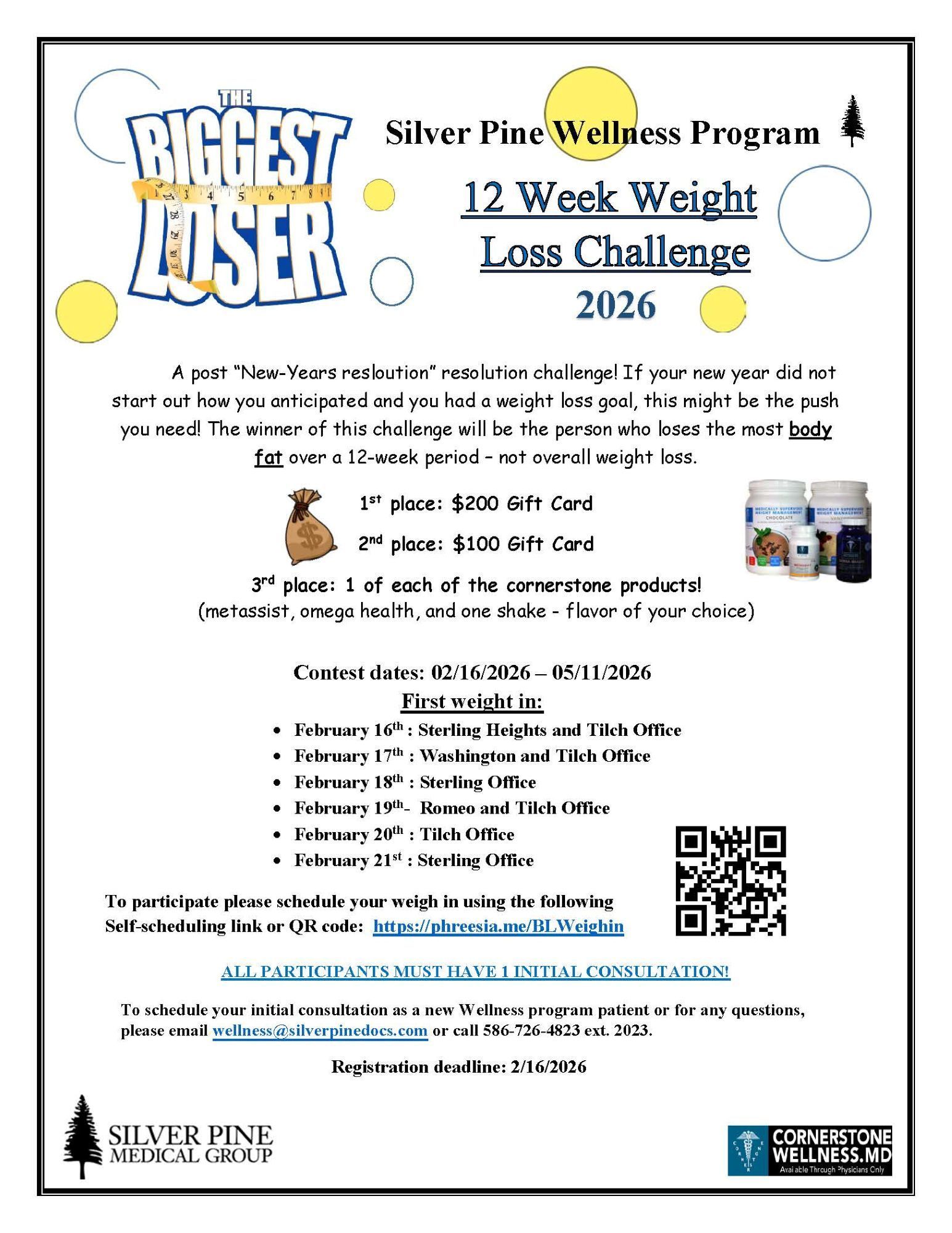 For additional information on the program please contact Silver Pine Medical Group at 586.726.4823 ext 2023 or email at wellness@silverpinedocs.com to schedule an initial consultation with one of our Wellness Coaches.